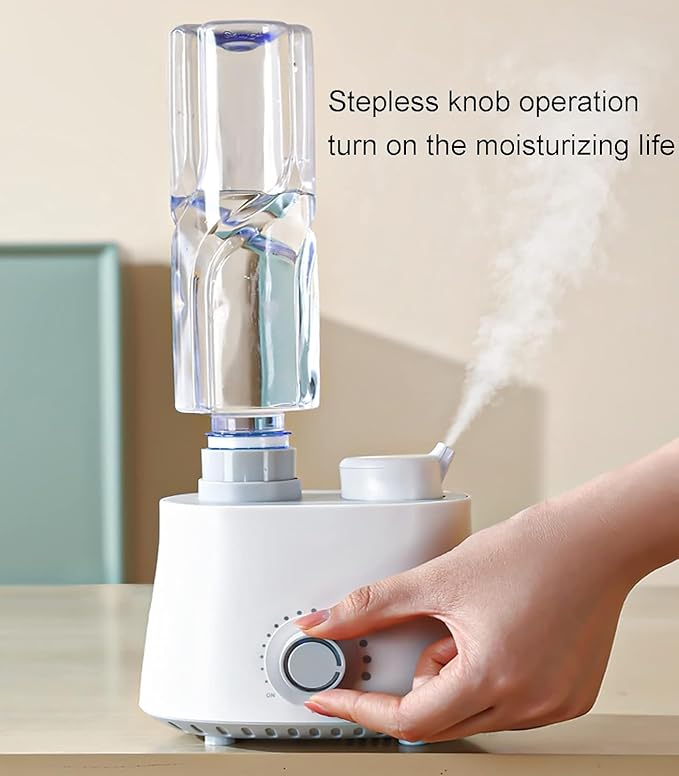 - No Water Tank Design: This humidifier adopts a new type of no water tank design, and all beverage bottle water bottles on the market can be used as water tank to avoid dirt in it.