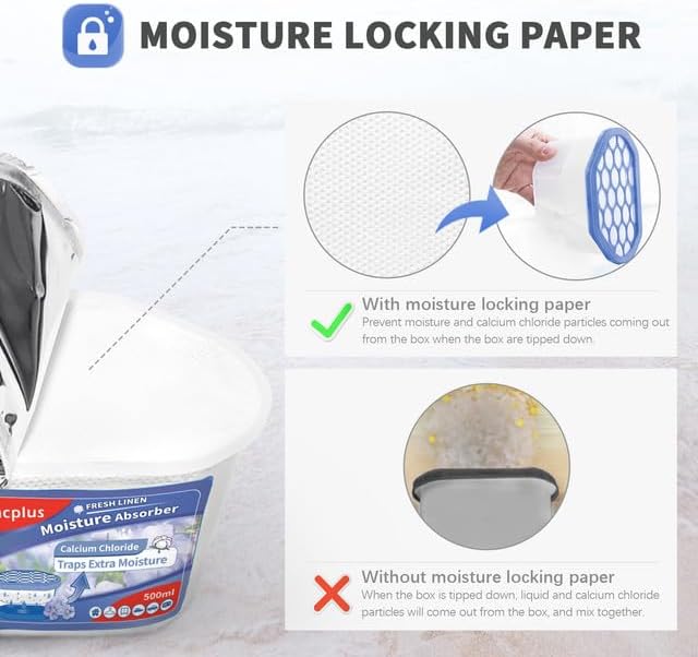 - Premium Quality: To prevent water leakage, Vacplus Closet moisture absorber designs with unique lock wet paper and high-quality collecting layer. This dehumidifier remover works great for your bathroom, basement, kitchen, laundry room, etc.