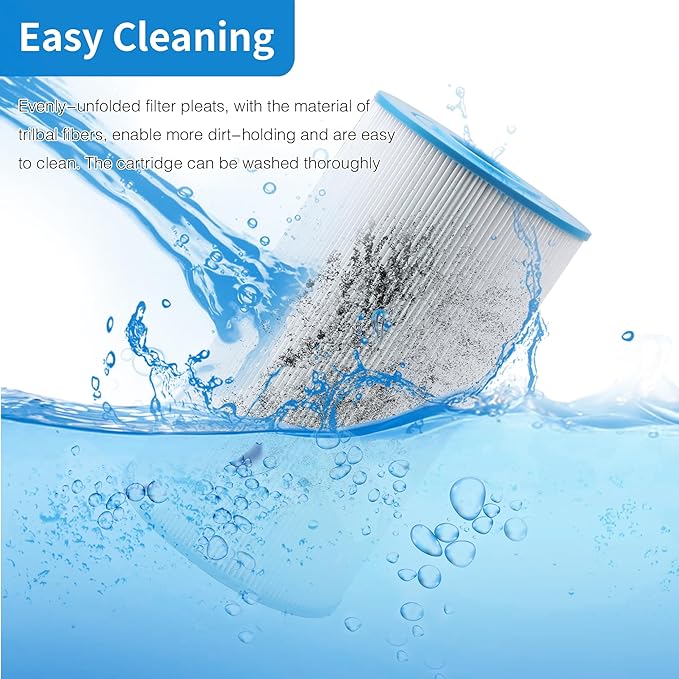 - 【EASY TO CLEAN】The Trilobal Fabric Structure filter material makes it easy to release impurities when cleaning the filter, the filter is like a new one after cleaning. It is recommended that you clean cartridges every 2 weeks to maximize your spa's performance.