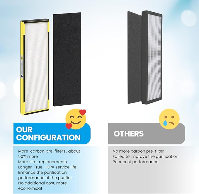 - 【High value】:2 HEPA filters +10 PCS extra activated carbon pre-filter;More pre-filters, more replacement times for cleaner ambient air; At the same time more effectively improve the service life of HEPA, reduce the cost of replacement parts.