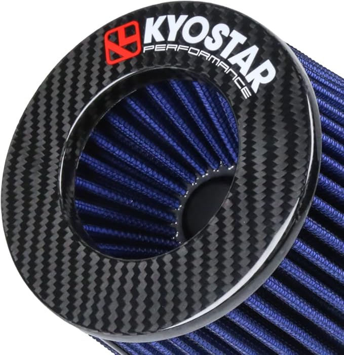 Kyostar 3 Inch 76mm Cold Air Intake Filter Cone Universal Carbon Fiber Replacement High Flow Dry Air Filter Black