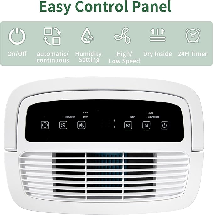 - 【MORDEN DESIGN】- 24-hour timer, 2 fan speeds, child-lock, water full alarming and 2 ways of drainage (by water tank or by pipe) , all of these promote a easier and convenient way for you to control the dehumidifier. Turn on the dehumidifier and set a timer before you leave home so that when you return home again, you can immediately enjoy the comfortable and pleasant air. Press the "mode" button for 3 seconds to lock all the buttons on the control panel in case children will play on it.