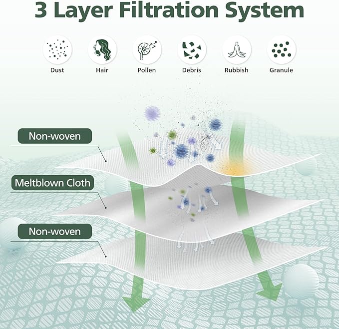 - HIGH-EFFICIENCY FILTRATION: Our L60 SES vacuum bags made of 2-layer superfine melt-blown fiber filter and 2-layer non-woven fabrics, the high-density fabrics is tough enough for wear and tear, to ensure the inside is not punctured by sharp garbage, also high effectively blocks over 99.97% dirt, detritus, and other particles as small as 0.3 microns