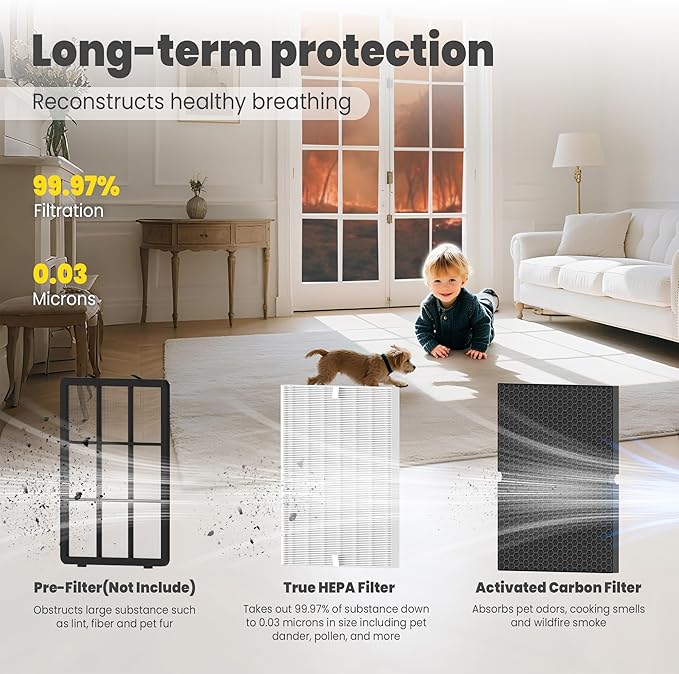 - 𝗘𝘅𝗰𝗲𝗹𝗹𝗲𝗻𝘁 𝗔𝗶𝗿 𝗣𝘂𝗿𝗶𝗳𝗶𝗰𝗮𝘁𝗶𝗼𝗻 𝗣𝗲𝗿𝗳𝗼𝗿𝗺𝗮𝗻𝗰𝗲 - Enjoy fresh air all-year-round with Funmit 116130 air purifier filter H replacement for winix 5500-2 air purifier to ease uncomfortable symptoms caused by problematic air. The H13 true hepa filter works alongside high-efficiency activated carbon filter to take out 99.97% of the airborne substance as small as 0.03 microns and decomposes unpleasant household odors and wildfire gases effectively, keeping your living environment air fresh