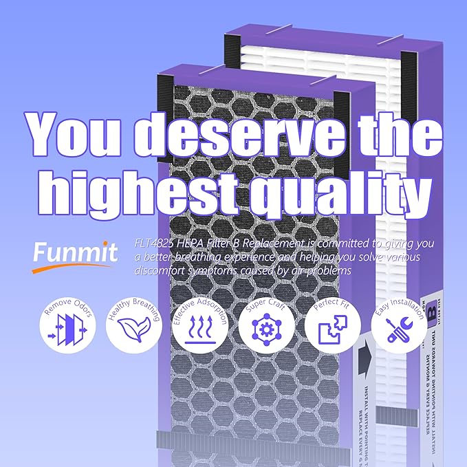 - 𝗘𝗫𝗖𝗘𝗟𝗟𝗘𝗡𝗧 𝗙𝗜𝗟𝗧𝗥𝗔𝗧𝗜𝗢𝗡 - Enjoy fresh air all-year-round with Funmit Upgrade FLT4850PT Replacement Filter to ease uncomfortable symptoms caused by problematic air. The H13 true hepa filter works alongside high-efficiency activated carbon filter to take out 99.97% of the airborne substance as small as 0.03 microns and decomposes unpleasant household odors and wildfire gases effectively, keeping your living environment air fresh