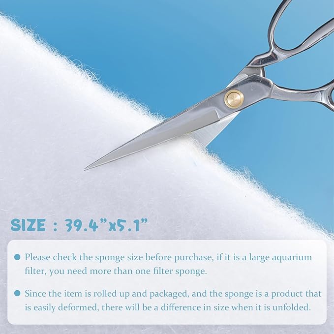 - 【SIZE】39.4”x5.1“. Please check the sponge size before purchase, if it is a large aquarium filter, you need more than one filter sponge.