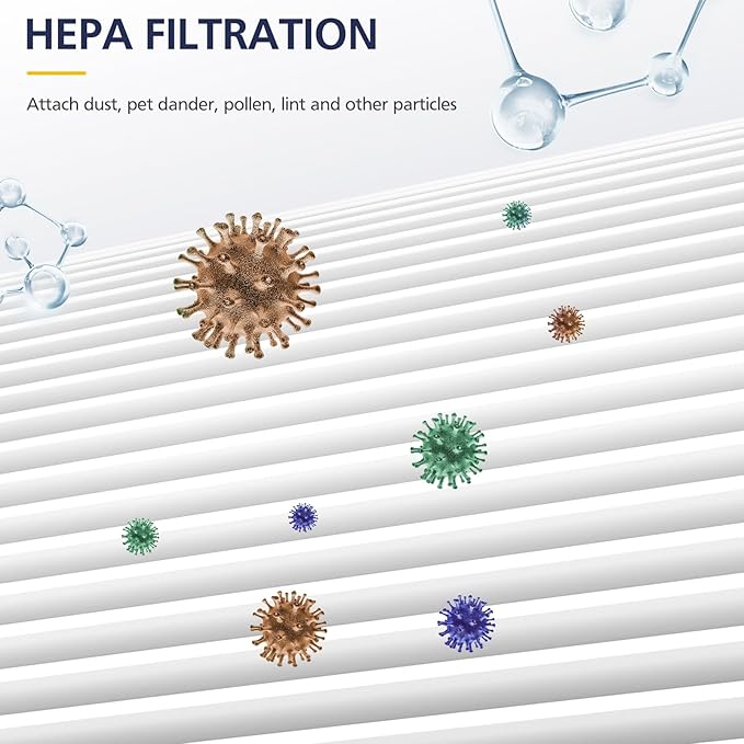 - 【HEPA Material】Made of HEPA filter, which can effectively attach 99.97% of airborne particles as small as 0.3 microns in size, such as dust, hair, dander, lint, automatically improving indoor air quality better