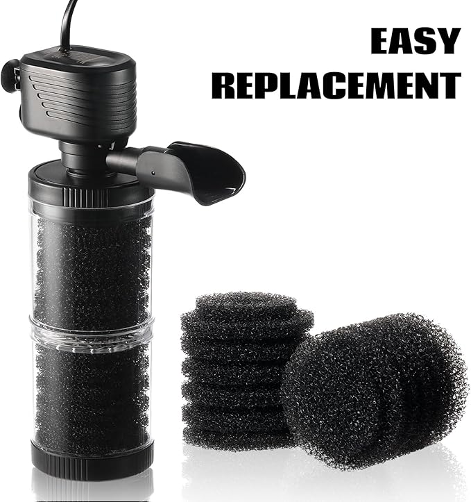 - Effective Filtration: Enjoy triple-stage biological cotton filtration that prevents small fish and shrimp from getting sucked into the filter, maintains water flow, reduces clogging, and ensures long-term filtration.