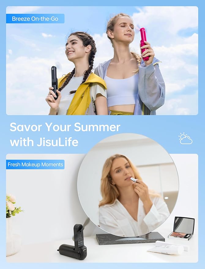 - A Palm-sized Backup Charger: Designed with a pocket size, this portable fan easily fits into any bag for on-the-go convenience; Doubling as a backup power bank, it keeps your devices charged when needed, making it your travel and summer essentials