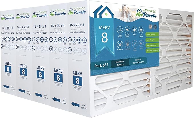 - 16x25x4 replacement air filters are suitable for furnaces, air conditioners, heat pumps, or HVAC systems. Air Purete is your compatible replacement for several renowned models, including: 3M Filtrete Healthy Living 16x25x4; Aerostar 16x25x4, MERV 8