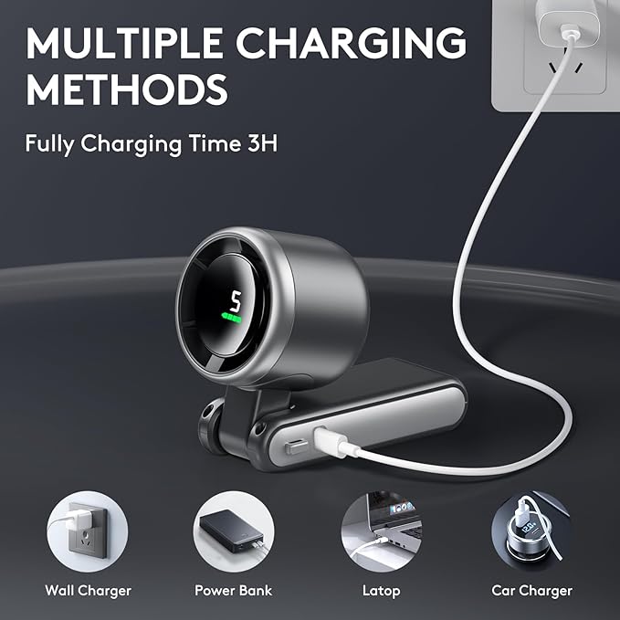 - 【LED Digital Display & Power Reminder】- Handheld Turbo Fan is equipped with a HD digital display screen, which can show the real-time gear and remaining battery power. Can remind you when you need to charge the fan, Make sure you have a cooling companion on every trip.