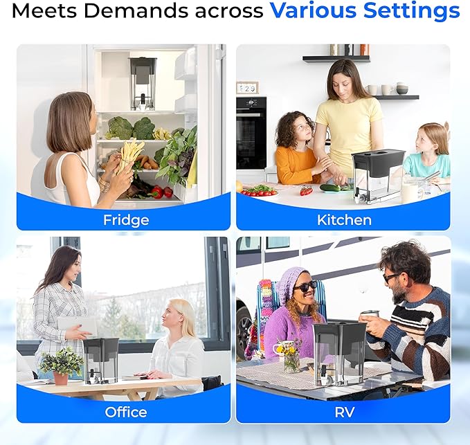 - [Slim Design] Measuring only 14.76 x 5.55 x 10.16 inches, this slim water filter dispenser can be placed anywhere withoug occupying too much space, like bedroom, kichen, fridge, office and RV. Besides, despite its compact size, it has a high capacity of 35 cups, and can meet demands of large families for pure water for a whole day.
