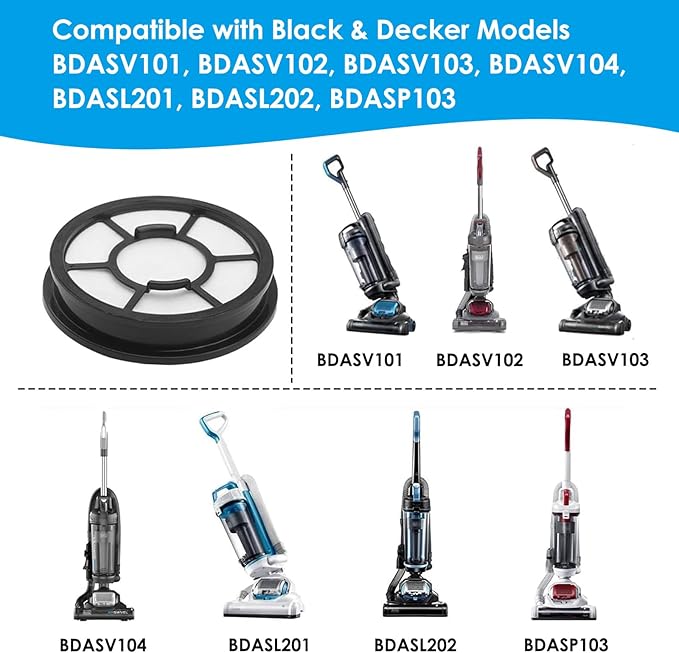 - Compatible Models: Designed to fit for Black+Decker vacuum models BDASV101, BDASV102, BDASV103, BDASV104, BDASL201, BDASL202, BDASP103 for hassle-free replacement.