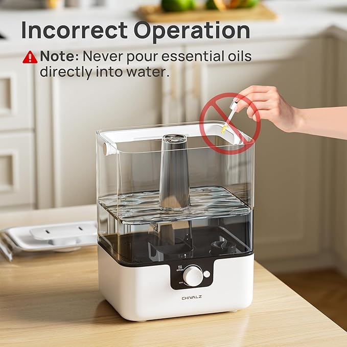 - Perfect Baby Humidifiers for Bedroom : The cool mist humidifiers for home has a knob to adjust the mist output and can run at a minimum of 26dB at the lowest setting, so enjoy a peaceful night’s rest. Soft blue night lights can also be turned on or off. CHIVALZ humidifiers for bedroom is an ideal choice for bedrooms, large rooms, baby nursery, offices, indoor plant humidifiers, and more. It is recommended to place the humidifier 16inch away from non waterproof walls, appliances, etc. when using it