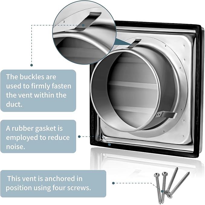 - Easy Installation: Compatible with rigid metal or plastic ducts, or use steel duct clamps for flexible dryer vent hose. Mount securely with included screws. Quick installation process; mark screw hole positions on the wall, drill holes, and attach in minutes. Easy to remove and clean