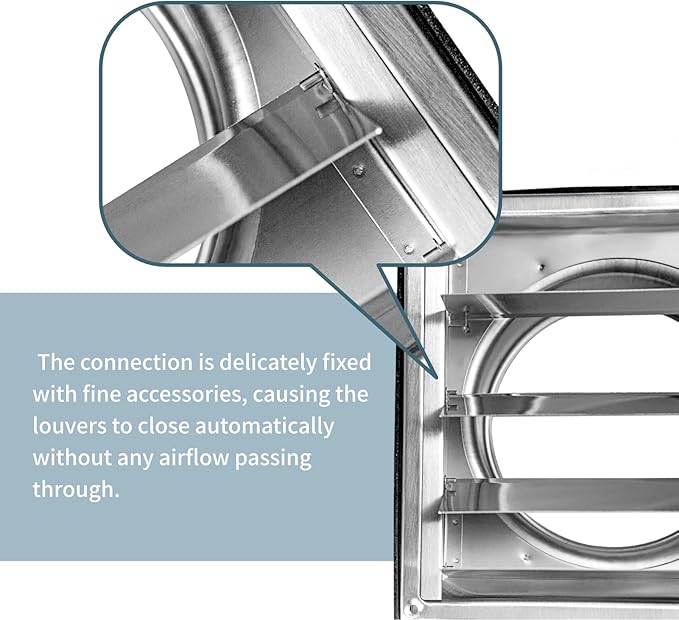 - Premium Materials: Crafted from top-grade 304 stainless steel, our exterior dryer vent cover offers exceptional corrosion resistance and durability. A foam stopper has been installed inside the hood to ensure quiet opening and closing. The flap design automatically closes to block outdoor elements such as noise, birds, squirrels, and rain