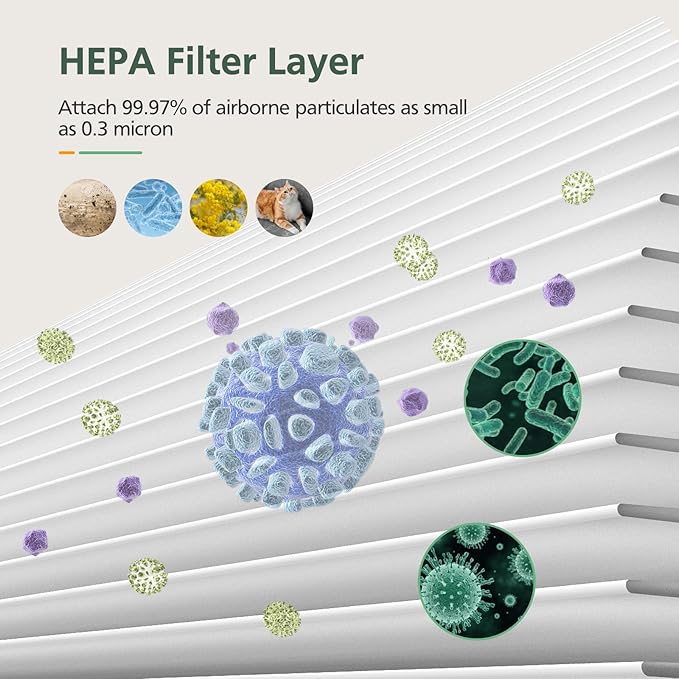 - HEPA Filter: Made with HEPA,the MK-D05 air purifier filter has a stronger filtration effect on ultra-fine suspended matter, like dust, pollen, pet dander. No worrying about fine particles in the air when the seasons change