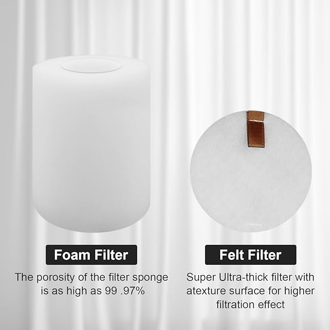 - 【Package including】4 replacement filt-ers (foam filt-er and felt filt-er), 6 filt-er brushes, 1 main brush is packed,you can change the replacement parts for 3 times using more than one year.