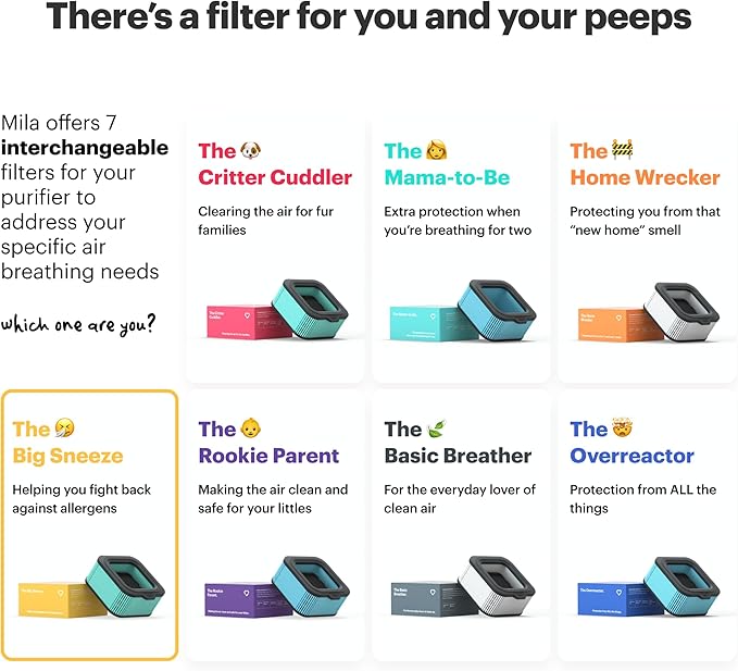 - MAXIMUM PERFORMANCE: With genuine Mila replacement filters. Using off-brand replacement filters may lead to a reduction in performance and cause noise. Search for ASIN B0CZ7F4TKH to find the Big Sneeze replacement filter.