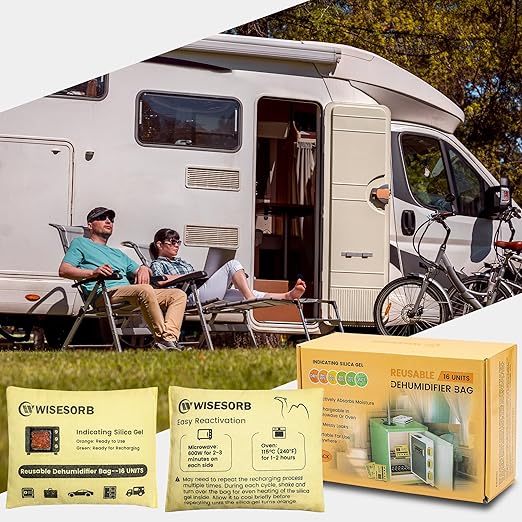 Rechargeable Gun Safe Dehumidifier, 4 Packs 16U Indicating Desiccant Packs with Transparent Window for Storage Reusable Silica Gel Packets Moisture Absorbers Safe Dehumidifier