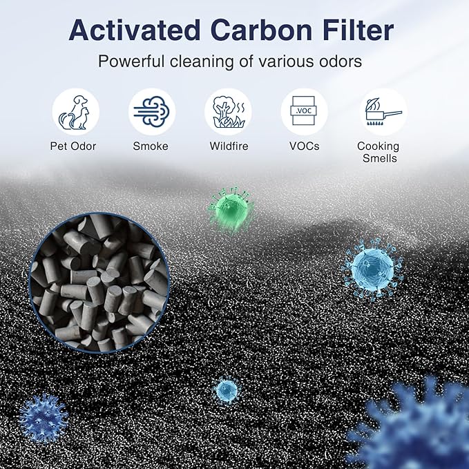 - 【ACTIVATED CARBON FILTER】The activated carbon filter of C535 filter replacement helps you solve the problem of unpleasant odors. Extra 8 carbon filters provide you more chance to replace it and take in odors such as VOCs, smoke, and cooking odors.