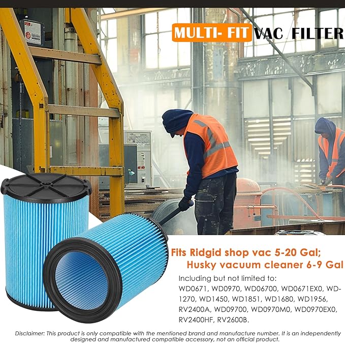 - 2x Filtration Efficiency: Unlike traditional filters, this universal VF5000 filter for rigid wet dry vac comes with extra foam sleeves allows for more efficient capture of sawdust, typical debris, garage or vehicle dirt, delivering dual-layer filtration while also preventing clogging for long-lasting durability, delivers unbeatable value for money. It can bear small amounts of liquid, but for long time wet use, please choose model #7000.