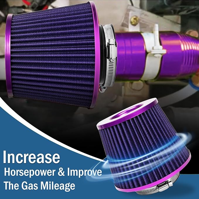 - 【WORLD-CLASS PROTECTION】Safeguard your engine against harmful contaminants with our top-of-the-line filtration technology. We're dedicated to pushing the limits of engine protection, ensuring your vehicle performs at its peak while maintaining its longevity.Upgrade your vehicle's performance, protect your engine, and make an eco-friendly choice with our Universal Clamp-On Air Intake Filter.