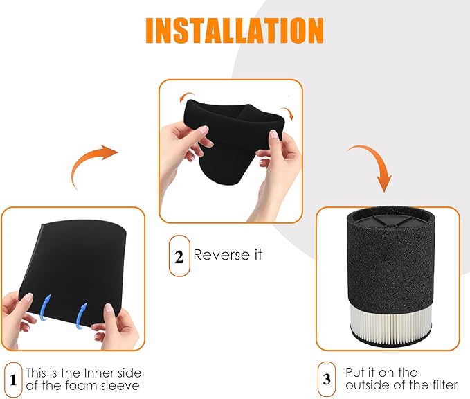 - 2x Filtration Efficiency: Unlike traditional filters, this universal VF4000 filter for rigid wet dry vac comes with extra foam sleeves allows for more efficient capture of sawdust, typical debris, garage or vehicle dirt, delivering dual-layer filtration while also preventing clogging for long-lasting durability, delivers unbeatable value for money. It can bear small amounts of liquid, but for long time wet use, please choose model #7000.