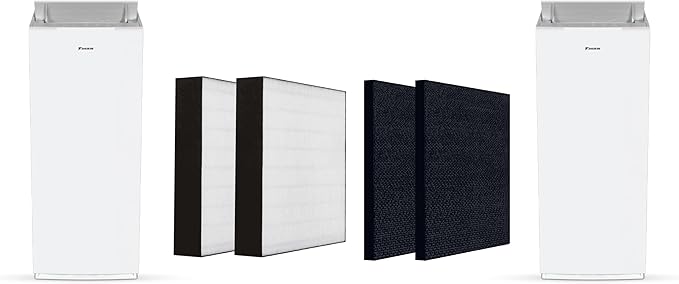 Daikin Room Air Purifier Bundle, HEPA Air Purifier with Pre-filter, Carbon, and UVC LED Light Filtration, Zero Ozone, CARB Certified, Includes 2 Purifiers and 2 sets of Replacement Filters