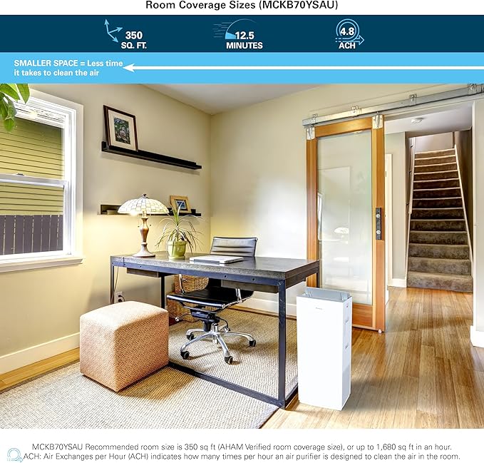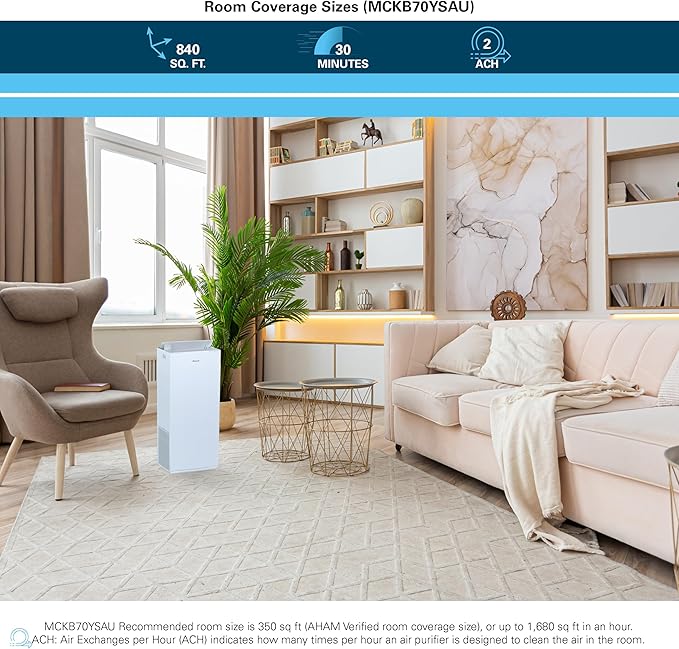 - UVC LED LIGHT TECHNOLOGY: UVC LED light technology aids in further increasing overall air cleanliness by inactivating bacteria and viruses as small as 0.1 microns that are trapped in the purification system?s HEPA filter. Keep clean and healthy air with the variety of internal filters utilized by the MCKB70YSAU.