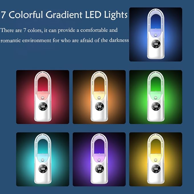 - 【4 in 1 Desk Fan for Home】Multifunctional small portable table fan with 4 functions including cooling fan, cool misting, 7 color gradient ambient lights,1-6H timer. The upgraded silent motor with strong wind and fast cooling speed, to help you cool quickly and keep quiet in just a few seconds (when using ice cubes in the tank), while enjoying the spray, keep the skin away from the dry wind. (Note:The desk fan only works while the usb power is connected)