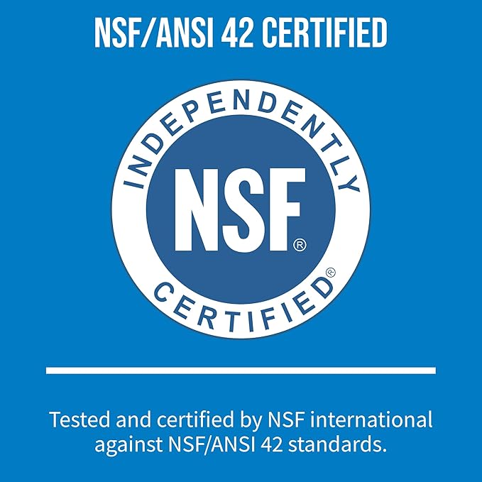 - Authoritative Certification - Certified and tested to NSF/ANSI 42 standard to reduce chlorine, odor and retain beneficial minerals in your water.