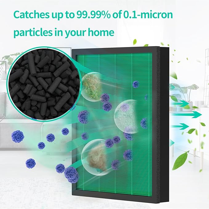 - High-Efficiency Filtration: This coway airmega 400 filter set for Coway is equipped with high-efficiency filtration system. â The True HEPA filter efficiently captures 99.99% of airborne particles as small as 0.01 microns, âĄwhile the activated carbon filter address unpleasant odors and smoke.