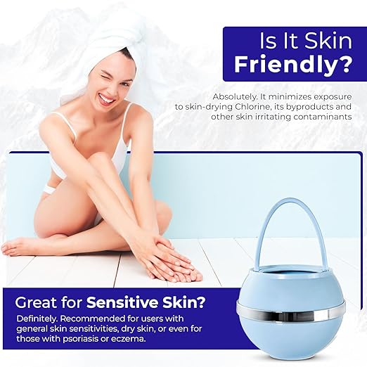 Crystal Quest Bath Ball Water Filter for Bathtub - 3-Stage Filtration, Removes Chlorine, Chloramine & Byproducts, 2,500 Gallons, BPA Free, pH Balanced Water, Fits Most Tubs, Easy Install - Blue