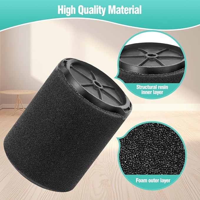 - Foam Wicking Design:This filter is designed for wet vacuum cleaners.The foam outer layer is designed to handle large volumes of suction water(NOTE:to prevent water-laden debris from entering the motor).The filter is reusable and requires only water to clean