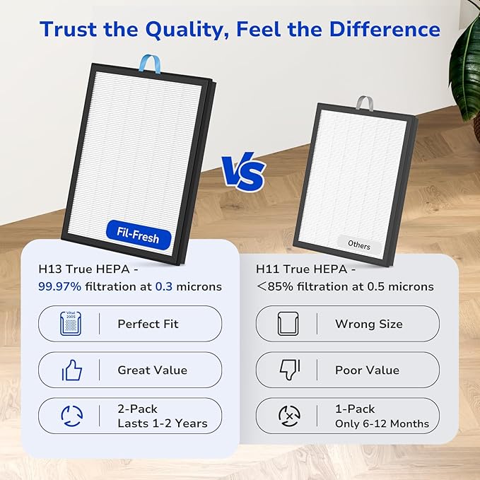 - Great Value for Cleaner Air: Get 2-pack of vital 200S H13 True HEPA activated carbon filters, easy to install, each lasting 6–12 months. Fil-fresh delivers expert-designed, affordable air purifier filter solutions, making cleaner air accessible to all for a healthier, more comfortable home