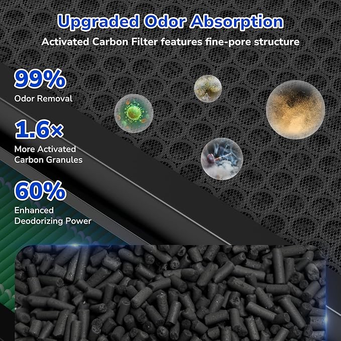 - Strong Carbon Filter: High-efficiency Vital 100S toxin absorber replacement filter features an advanced activated carbon filter that enhances deodorization by 60%, effectively removing smoke, vehicle exhaust, and VOCs—ideal for those living in urban or industrial areas with pollution