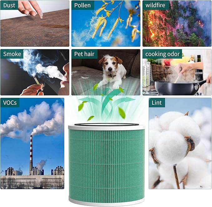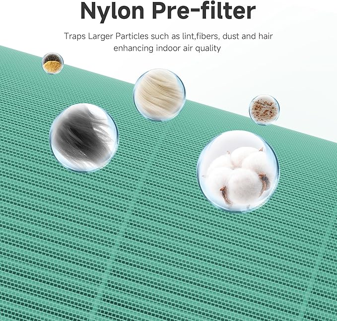 - 【3 Stages of Filtration】 Our AC400 air filter features High-efficiency 3-in-1 filtration systems including nylon Pre-Filter, main filter, and activated carbon filter absorb most of ordinary particle-s in the air, like pet dander, pollen and odor, etc, bring you fresh air all at home.
