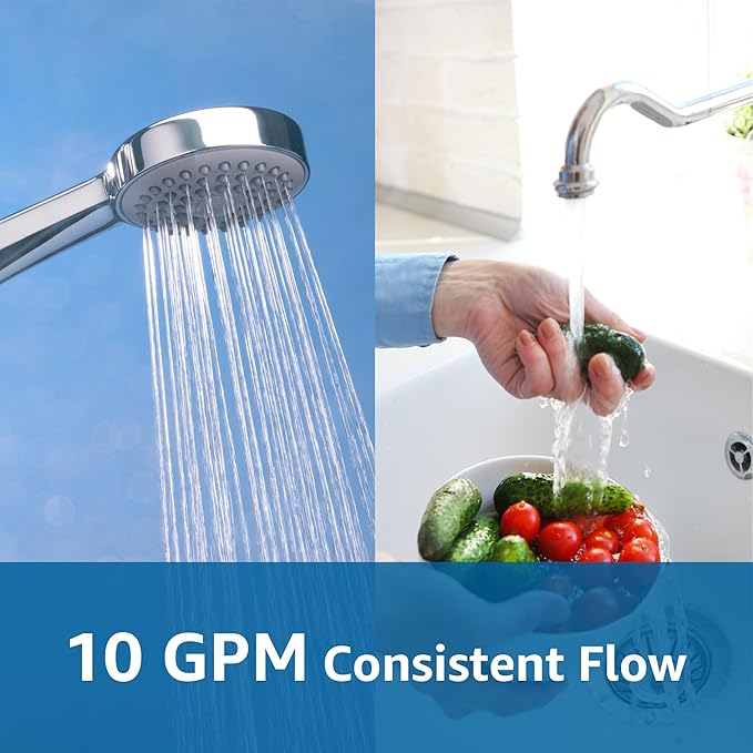 - Protects Household Appliances: Engineered to protect water appliances such as water heaters, shower heads, washing machines, and dishwashers from clogging and corrosion, it significantly achieves energy-saving and extends lifespan. Enjoy the full force of a 10 GPM flow rate, ensuring powerful water pressure remains unaffected.