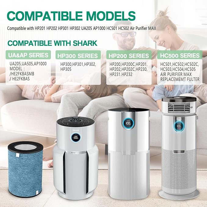 - Compatible Devices : compatible with Shark air purifier models: HP200 Series (HP201, HP202, HP202C, HP230, HP231, HP232), HP300 Series (HP300, HP301, HP302, HP305), HC500 Series (HC501, HC502, HC502C, HC503, HC504, HC505), and UA & AP Series (UA205, UA505, AP1000). Part numbers: HE2FKBAS, HE2FKBASMB, HE2FKPET, HE2FKPRO compatible with Shark air purifier models: HP200 Series (HP201, HP202, HP202C, HP230, HP231, HP232), HP300 Series (HP300, HP301, HP302, HP305), HC500 Series (HC5β¦ See more