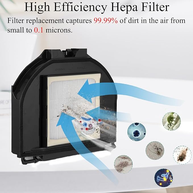 - RV2310AE HEPA filter can captures 99.99% of dirt in the air from small to 0.1 microns. Seal ring around the rim of the lid to make sure the vacuum effectively attach dust, pet dander and small particle.