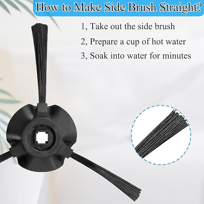 - Package Includes : 1 Main Brush, 6 Side Brushes, 2 Filters, 2 Foam Filters, 1 Cleaning Brush.