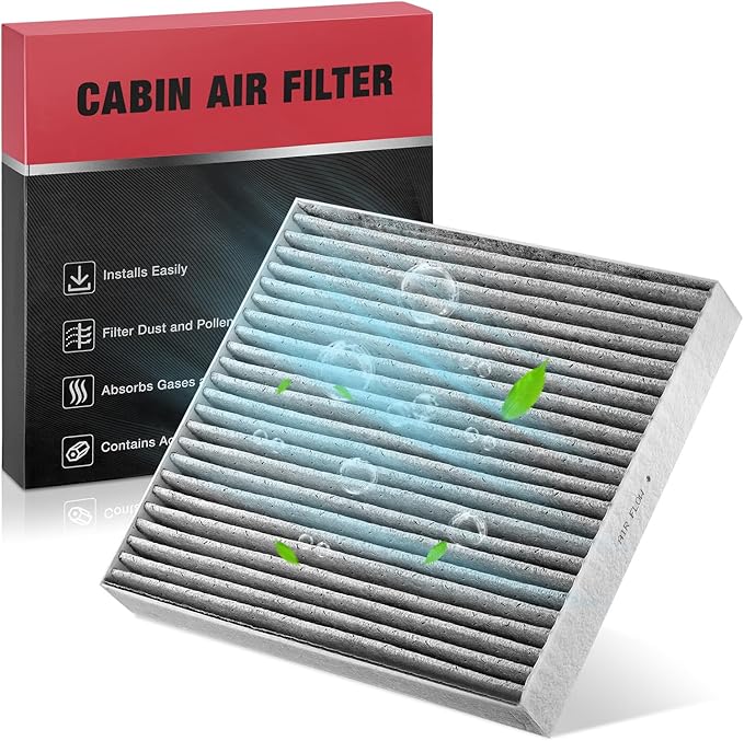 - 【Efficient Filtration】Cabin air filter features a close-meshed, non-woven layer that blocks particles, safeguarding your engine and extending your vehicle's life. It optimizes air conditioning and heating systems, ensuring high flow capacity for maximum comfort and efficiency.