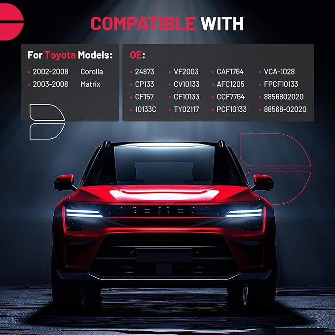 - 【Replaces Part】88568-02020, 8856802020, CF10133, CP133, CF157, CAF1764, FPCF10133, CCF7764, CV10133, VF2003, TY02117, PCF10133, 10133C, 24873, AFC1205, VCA-1028