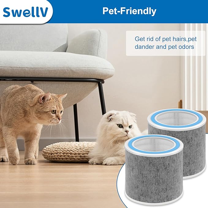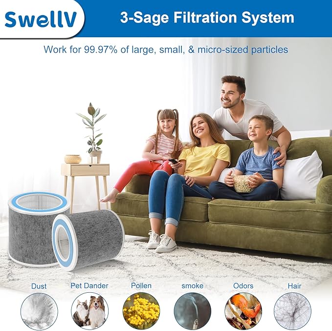 - 【High Effeiciency Multi-filter】Our replacement filter with true works for 99.98% of large, small, & micro-sized particles like dust, hair, pet danders, pollen down to 0.3 micron particles. The carbon filter helps to get rid of household odors and VOCs