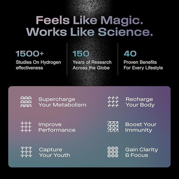 - Active Hydration Support: Stay refreshed with optimal hydrogen concentrations, designed to support skin health and immune function for a revitalizing hydration experience*