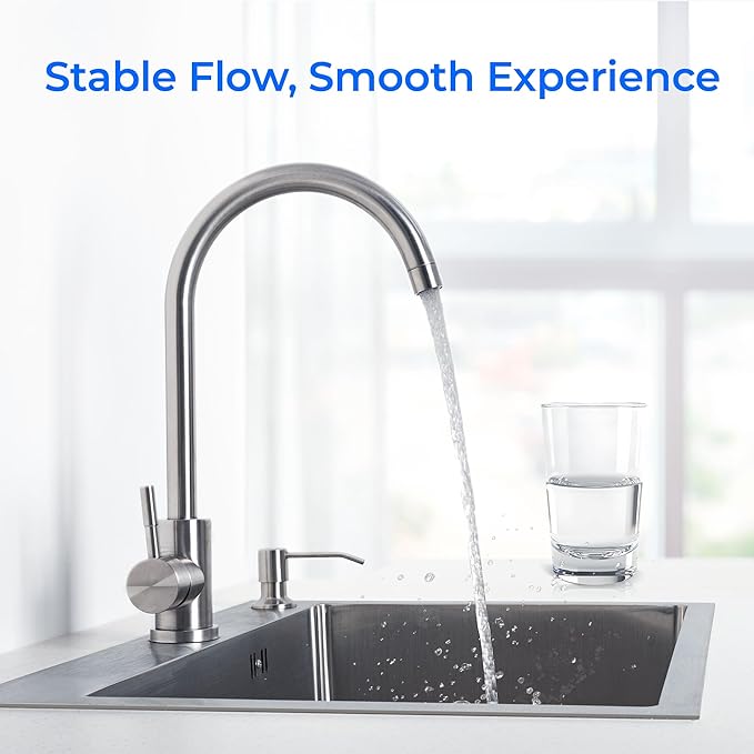 - [Safe Materials] Crafted from food-grade plastic housing, this under sink water filter guarantees that no impurities leach back into your water. It also features burst prevention, ensuring a secure and satisfying user experience.
