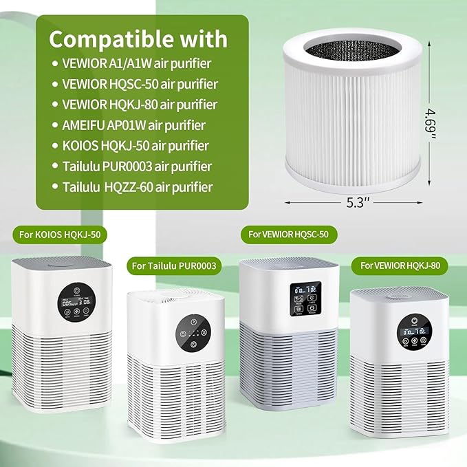 - Compatible Models: The replacement filter is compatible with VEWIOR HQSC-50/HQKJ-80/A1/A1W, and also compatible with AMEIFU AP01W and KOIOS HQKJ-50