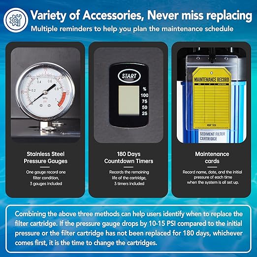 - 【 Improve Water Taste 】 – Sediment Filter and Carbon Block Filter reduce dirt, rust, sand, silt, and suspended solids, while treating bad odor, colored, or cloudy water.
