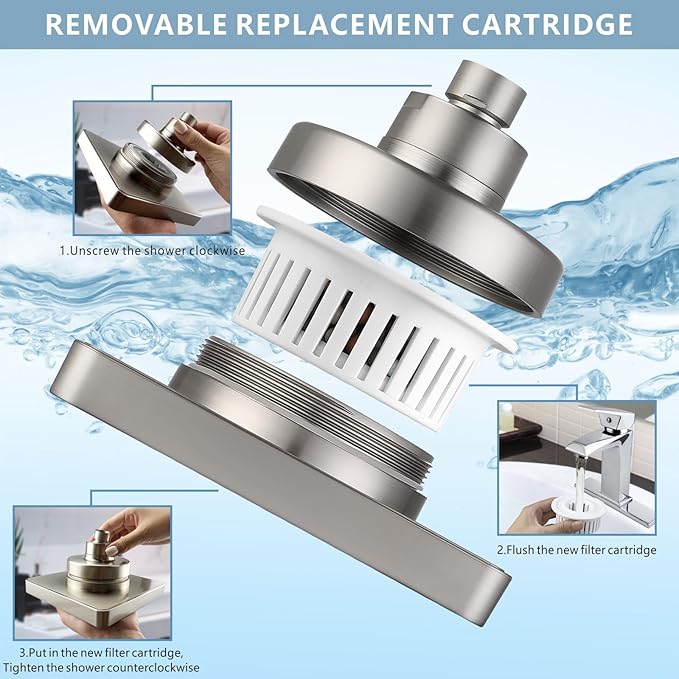 - ONE PIECE DESIGN - Our hard water filter showerhead boasts a one-piece design, concealing the water filter cartridge within its center. No extra filter purchases or installations required, saving your bathroom space.